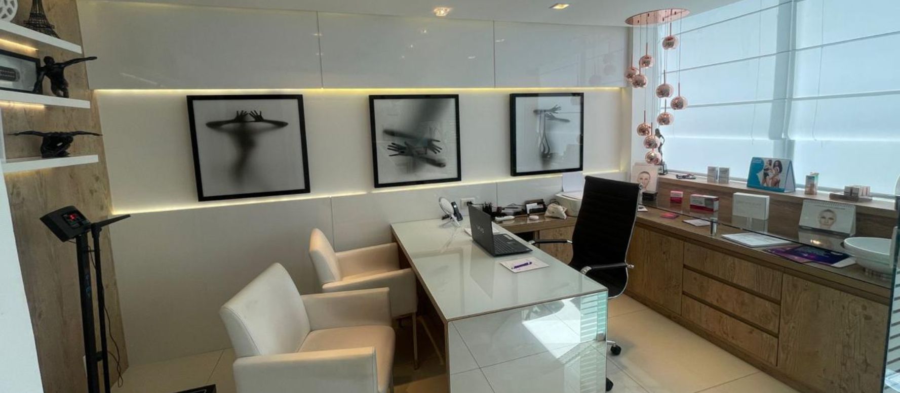 Cuidados com a beleza e saúde da pele por meio de tratamentos como toxina botulínica, preenchimentos, bioestimuladores, lasers e peelings.
